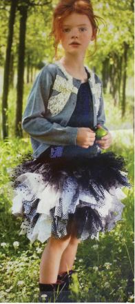 Et la jupe en voile de tulle, là, c’est ma Poupoune qui craque 😉 Quand elle a vu la robe, elle m’a dit direct qu’elle voudrait s’habiller comme ça. Et je trouve vraiment réussi l’alliance du côté « chic » et du côté « fillette ». Je n’aime pas les tenues qui « déguisent » les petits filles en mini-femmes, et je trouve que la robe de Tape à l’Oeil n’est pas du tout dans cet esprit (sachant que le modèle va du 3 au 10 ans, elle concerne clairement les petites filles, même si une version adulte ne serait pas pour me déplaire 😉 ).
