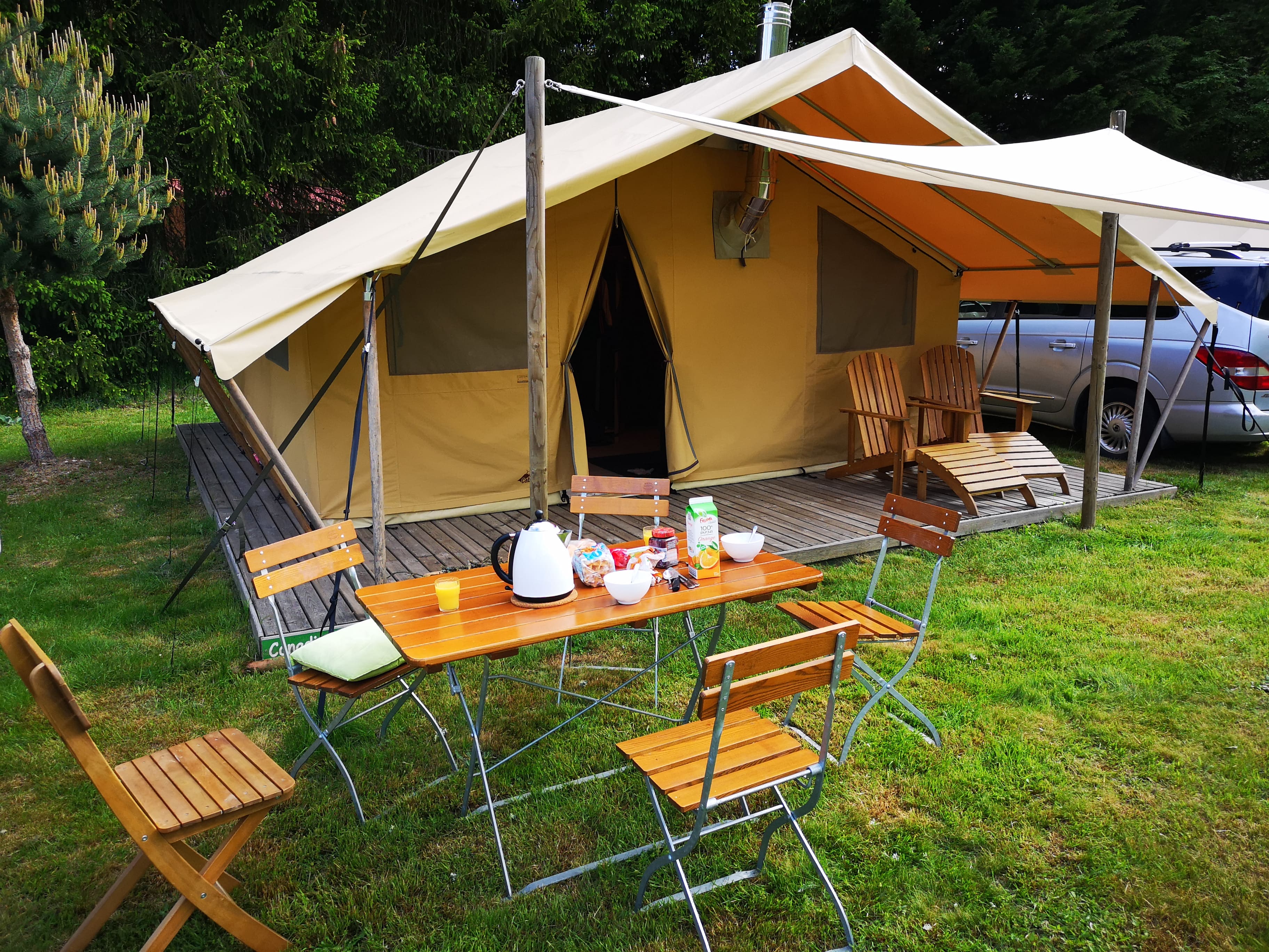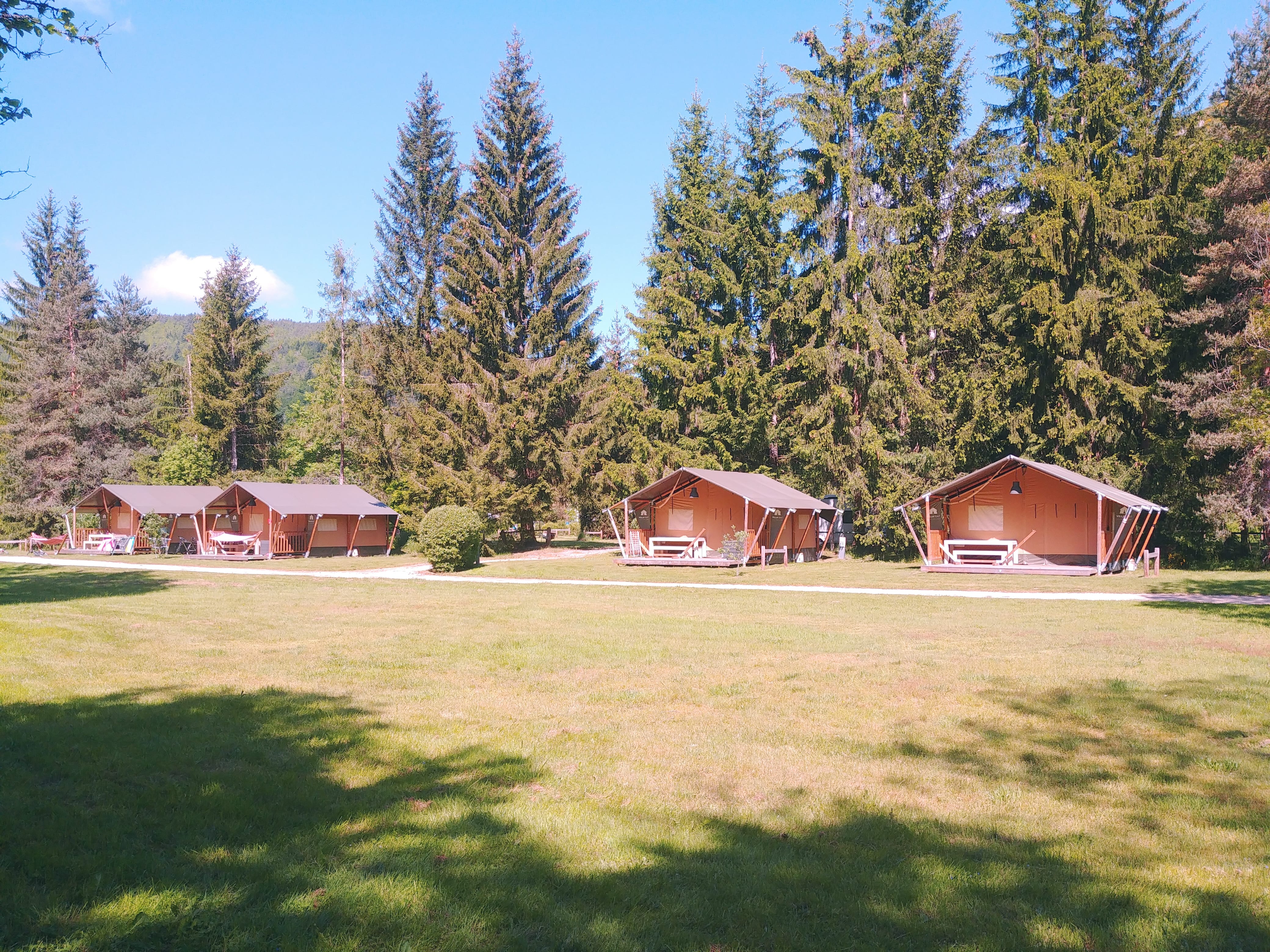 Tu as envie de tester ? C’est par ici ➡️ Camping Le Vaubarlet. Nous étions donc en Haute-Loire, dans le petit village de Sainte-Sigolène. Et pour le côté aventurier, on avait choisi l’hébergement en tente. Mais attention, version luxe, ou glamping. Avec des vrais lits et un poêle à bois dans la tente. Aller ramasser du bois avec les enfants et faire le feu dans le poêle à la nuit tombée : meilleur souvenir de tous les temps en famille.